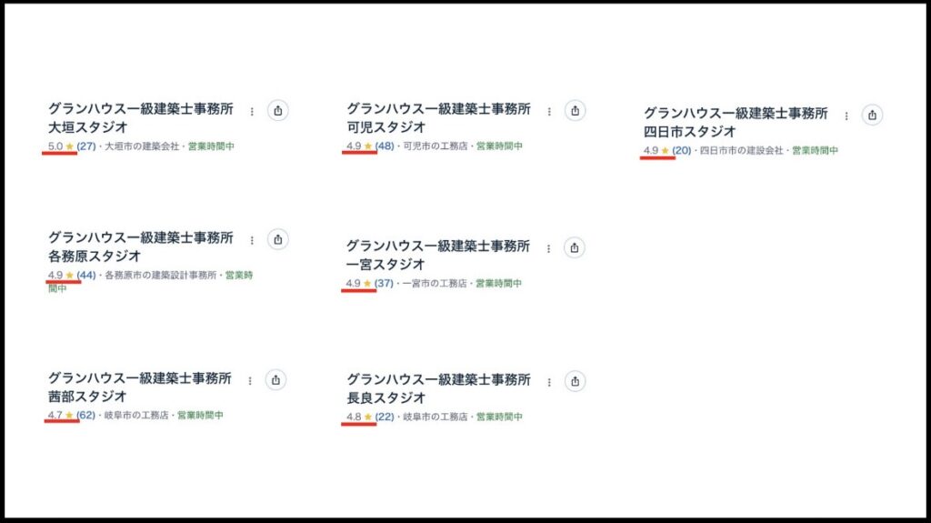グランハウスの施主さんからの口コミはもちろんのこと、Googleでのクチコミの評価も抜群に高いです。